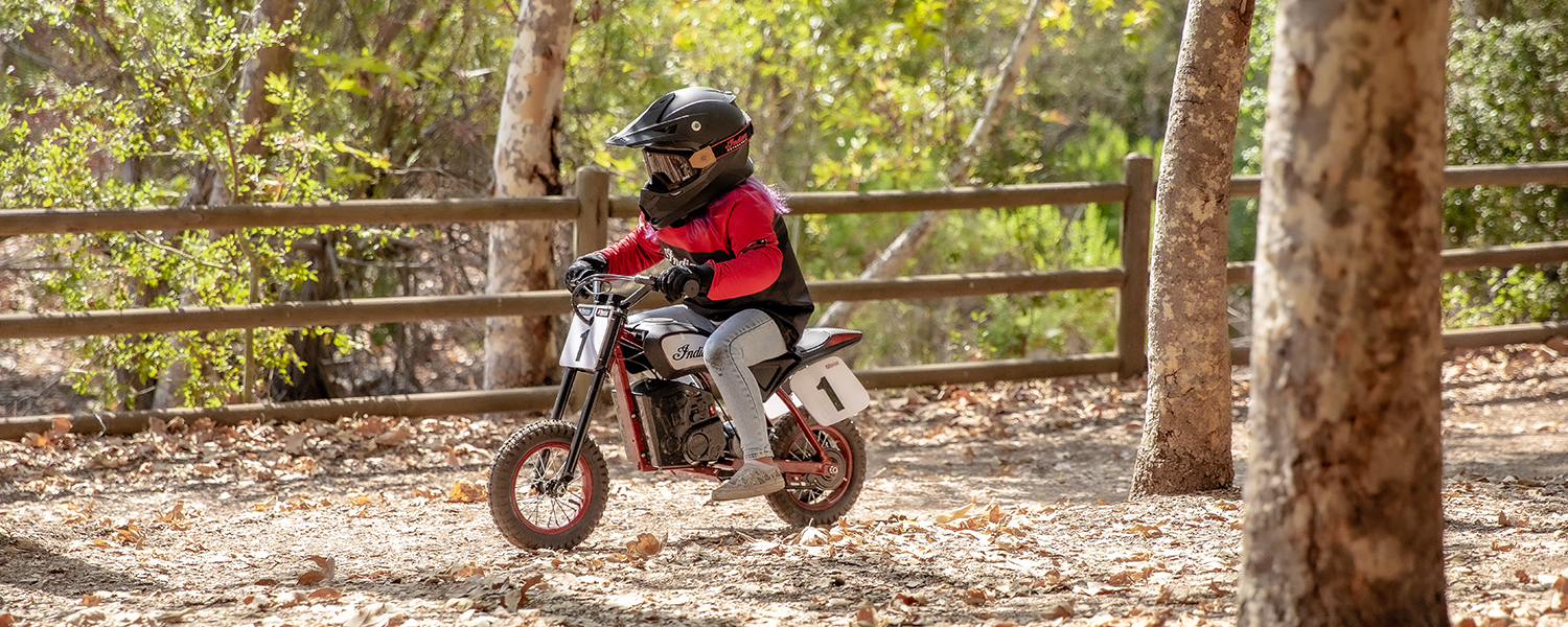 La eFTR Mini es la forma ideal de compartir con los más jóvenes, la pasión por los deportes de motor mientras que los adultos, supervisores, disfrutan de la tranquilidad de controlar la potencia máxima de la moto. Esta mini moto eléctrica presenta los colores y el estilo de la moto de Flat Track ganadora del título, incluida la placa número 1 del campeón. Tiene un interruptor de velocidad que el adulto supervisor puede ajustar entre velocidades máximas de 22 km/h (alta) y 16 km/h (baja). También tiene: un acelerador con agarre giratorio, un chasis de acero duradero, interruptor de modo de velocidad, freno trasero para un control que inspira confianza y una batería de largo alcance. Esta moto va dirigida a niños de 8 años en adelante, y el peso máximo del conductor debe ser de 63kgs.
